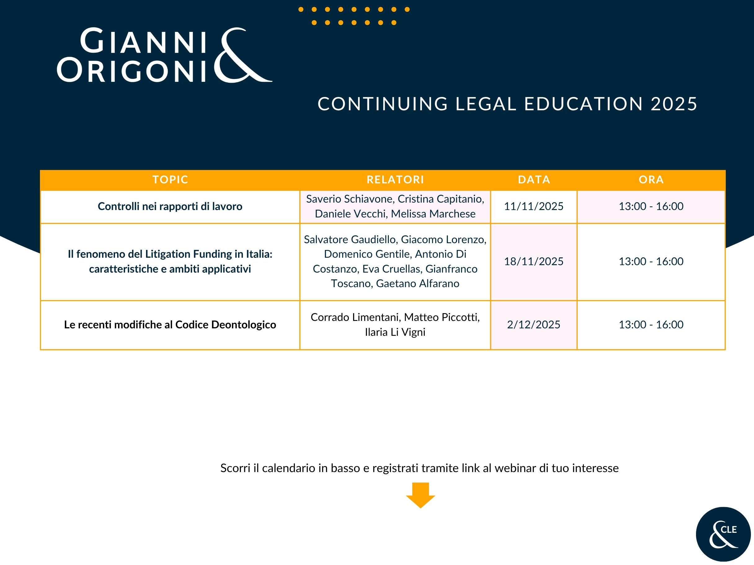 Relatori: Avv.ti Saverio Schiavone, Cristina Capitanio, Daniele Vecchi, Melissa Marchese