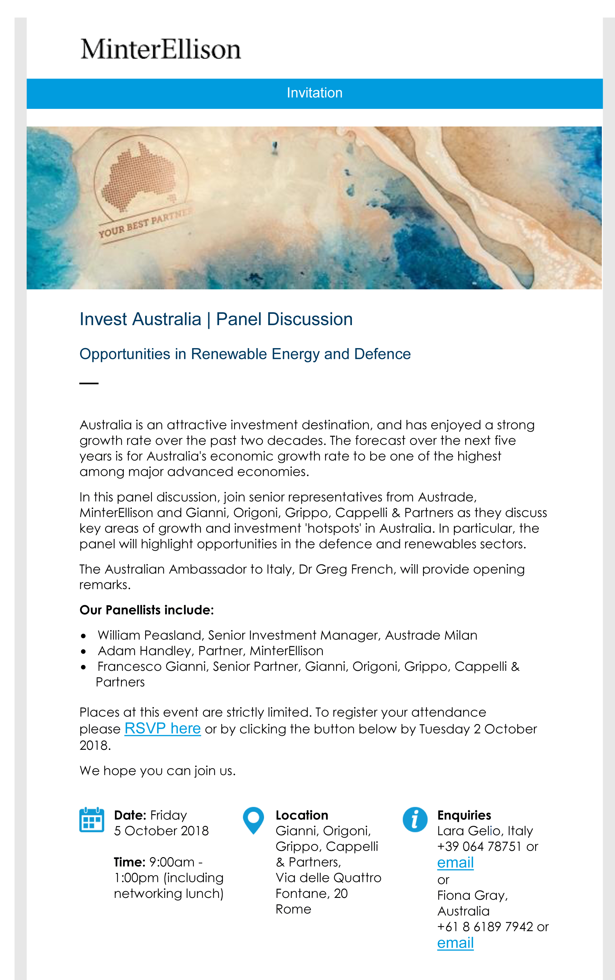 Home Events Invest Australia: Why Australia? Opportunities for Italian Companies; Defence & Renewables Sectors